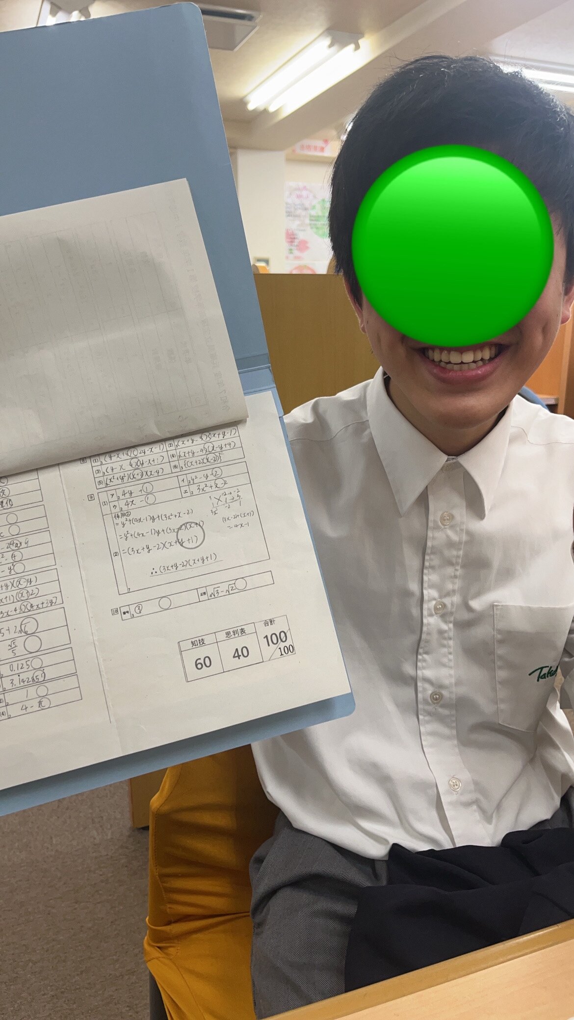 数学・・・平均69点のところなんと!!100点!!!初めての高校のテストで100点を獲得!!