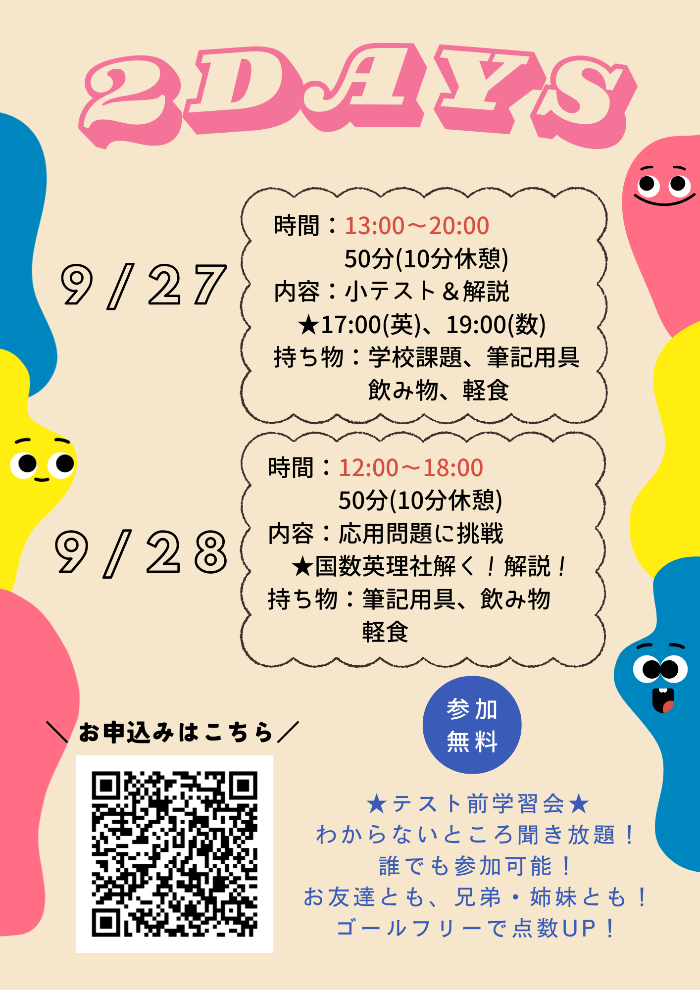 - ★テスト前学習会のご案内★