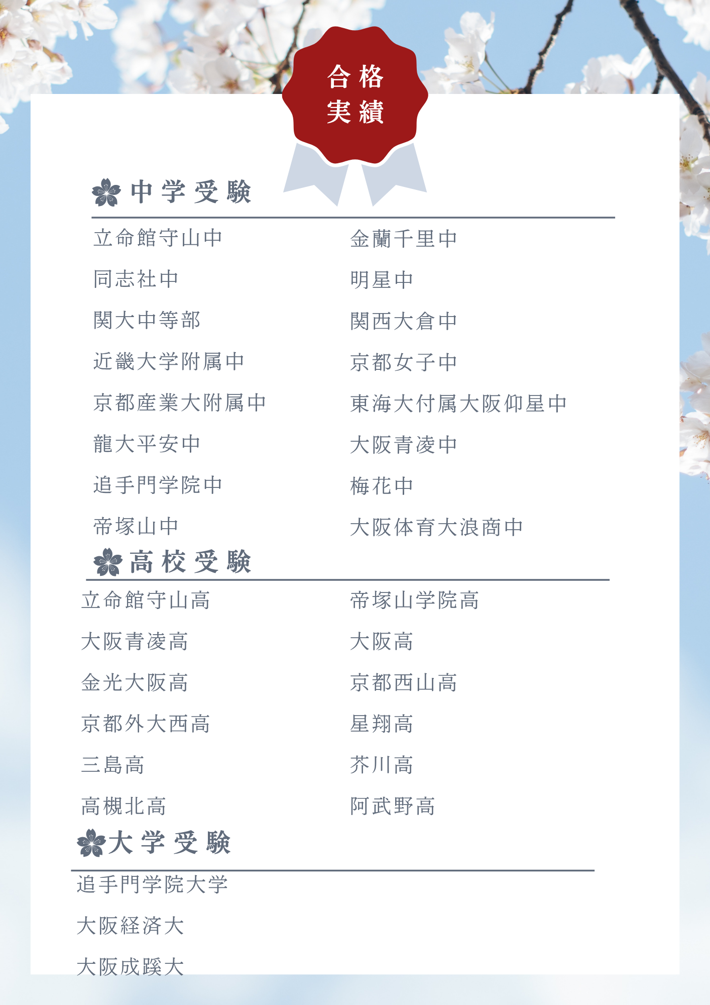 【大学入試合格校】