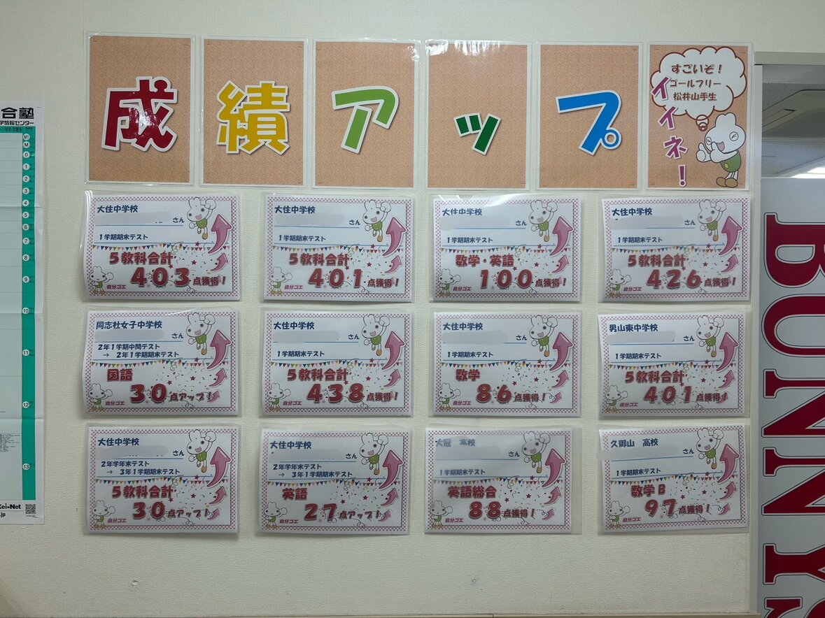秋学期からも生徒の皆さんは、「次も得点アップを狙いたい!」「次こそ掲示してもらえるように頑張る!」といった気持ちで日々勉強に取り組んでいます。