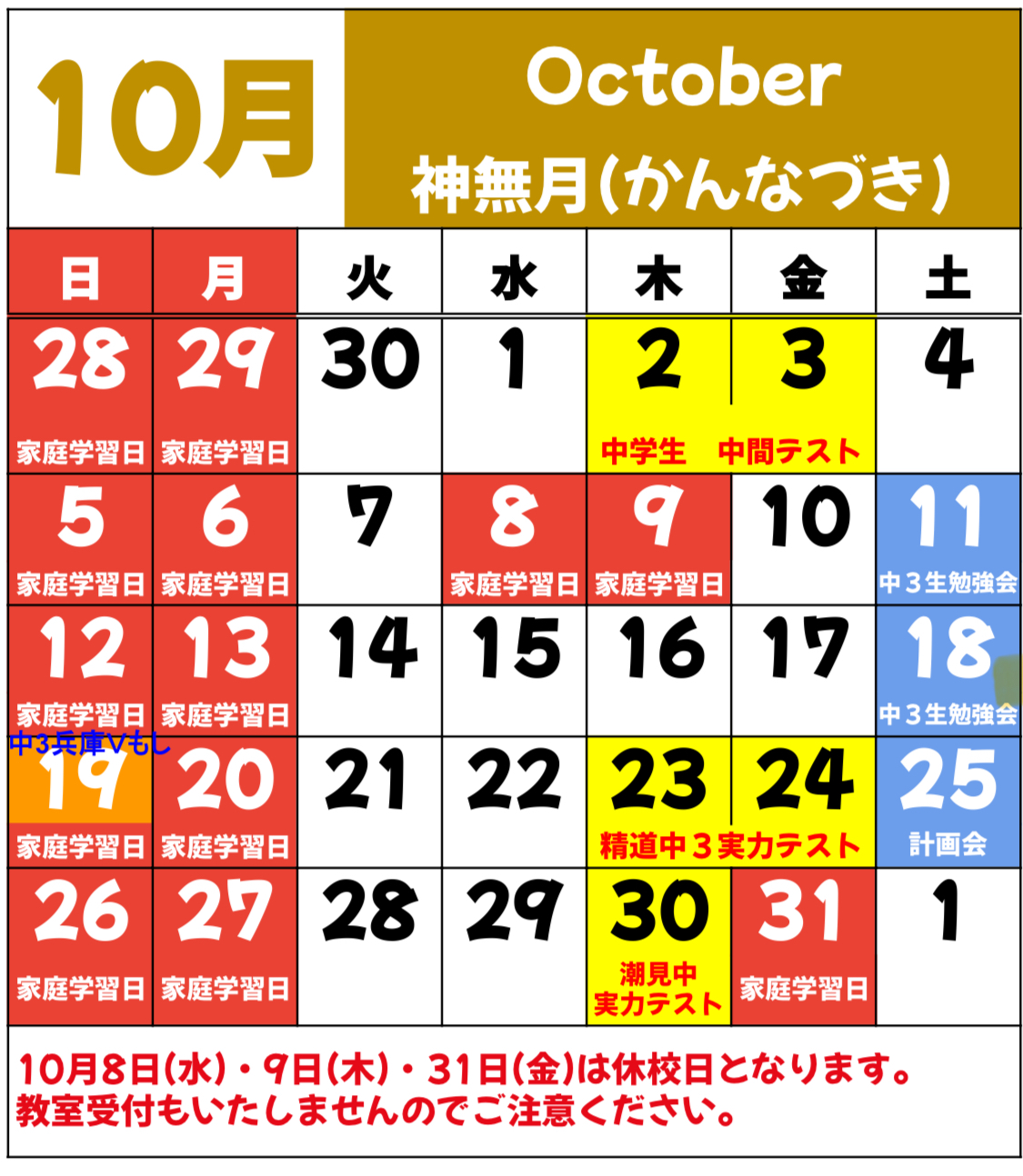 ★毎月毎週日曜日・月曜日は休校日になっております。