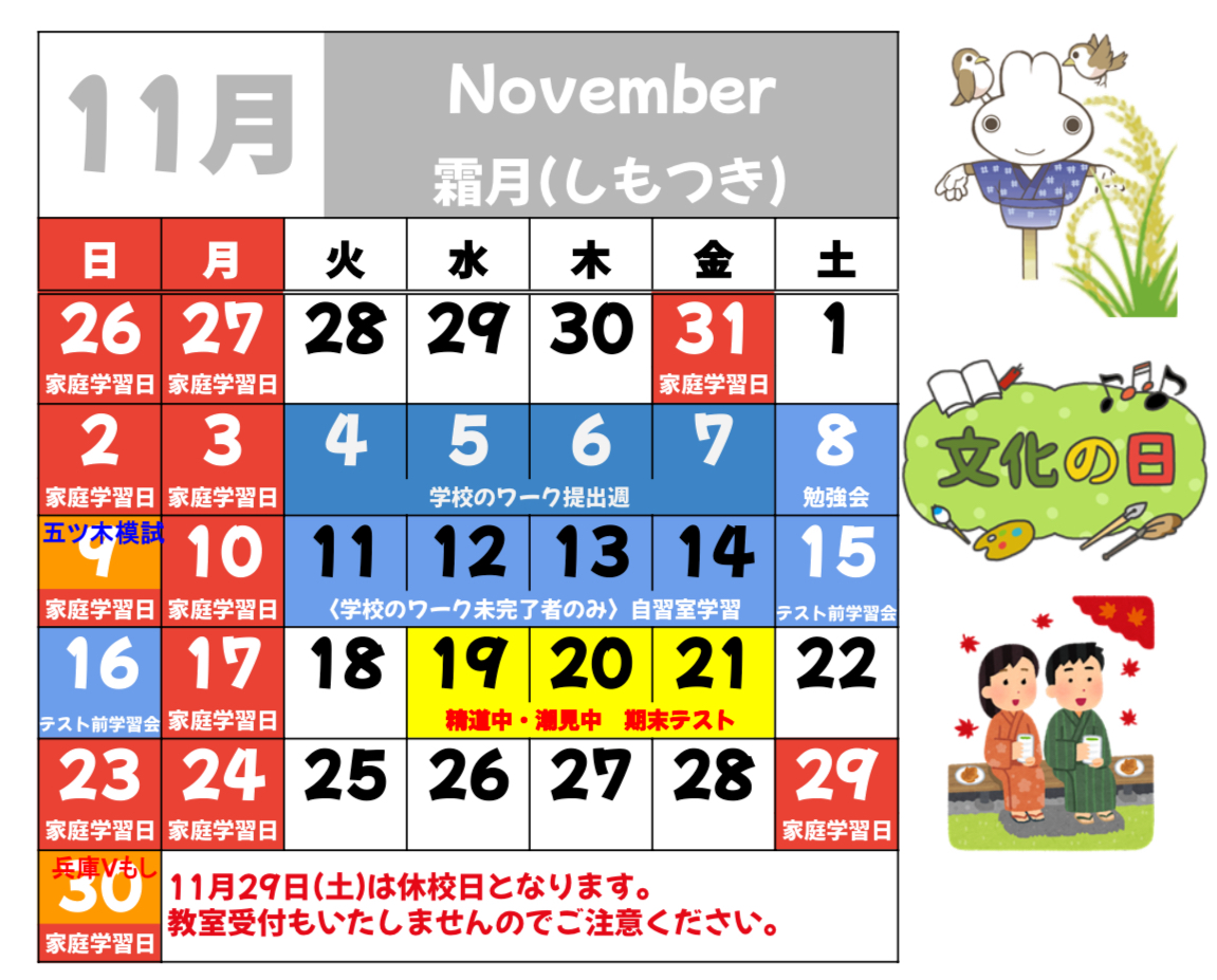 2025.11.01★11月休校日のお知らせ★